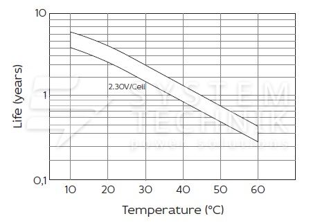 - Срок хранения без подзаряда: 6 мес. при 25°C;
