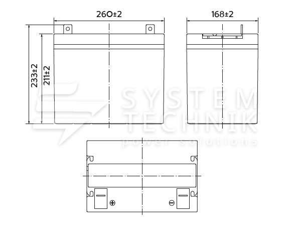- Срок хранения без подзаряда: 6 мес. при 25°C;