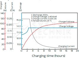- Срок хранения без подзаряда: 6 мес. при 25°C;