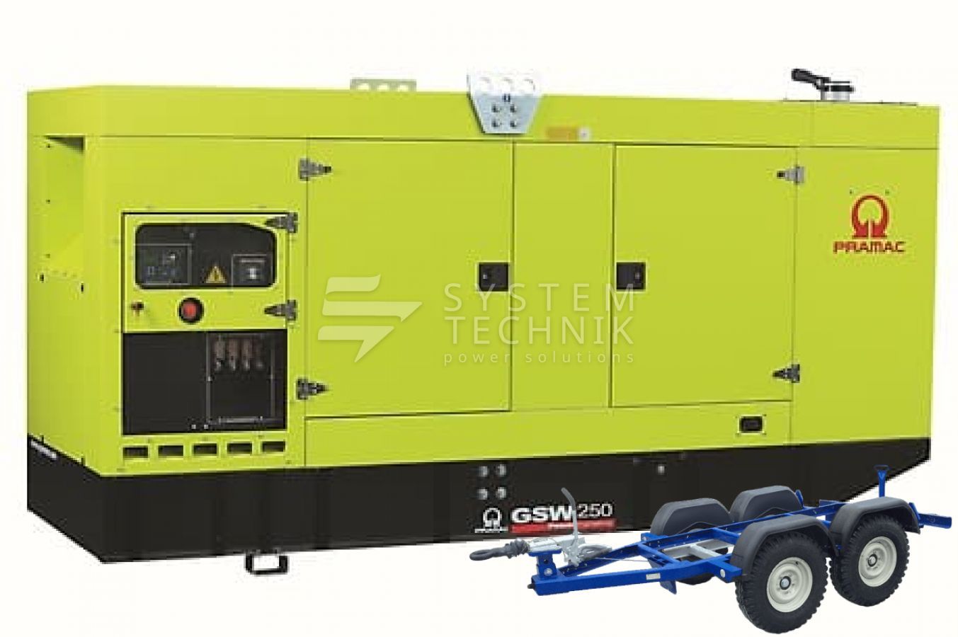 - Дизельный генератор Pramac GSW 250 P 400V В кожухе на прицепе
