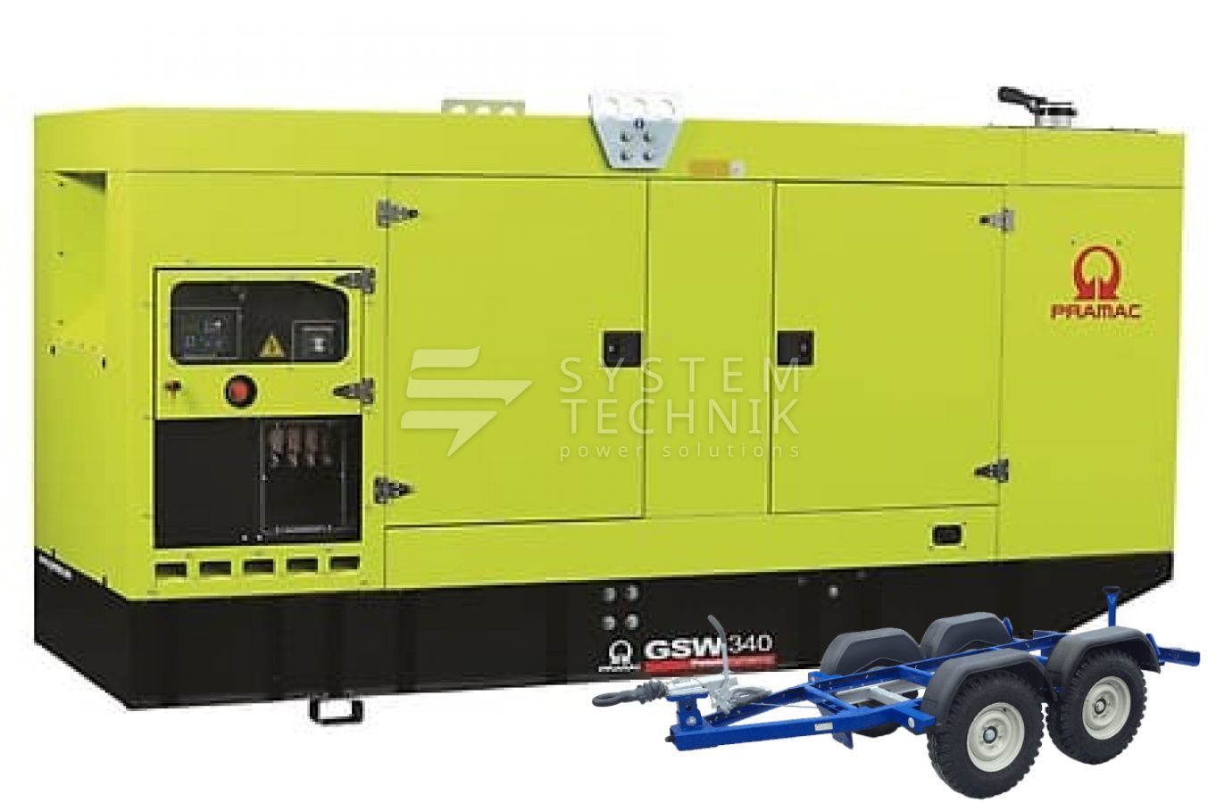 - Дизельный генератор Pramac GSW 340 P 400V (ALT. LS) В кожухе на прицепе