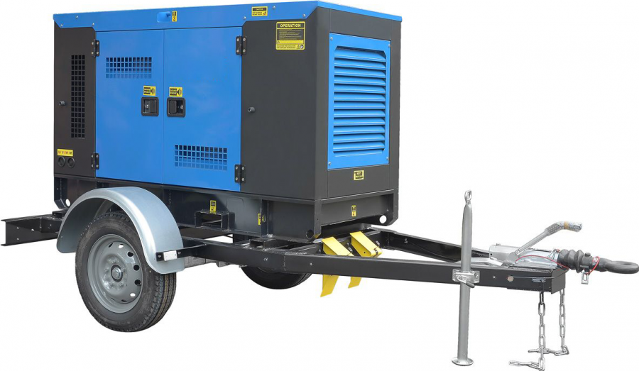- ТСС ЭД-32-Т400-2РКМ9 в шумозащитном кожухе на прицепе с АВР
